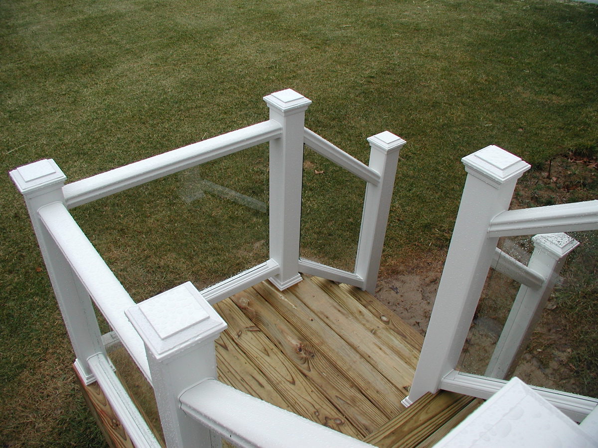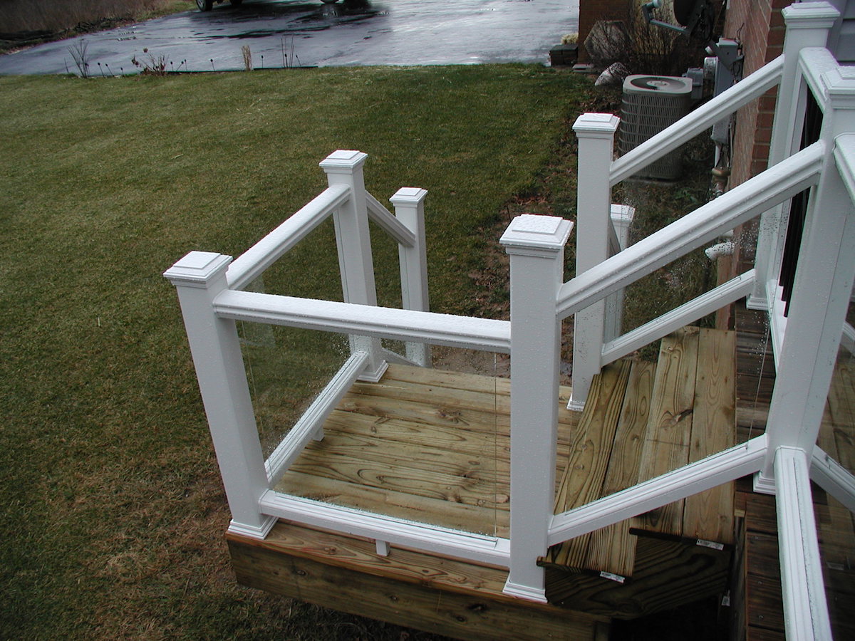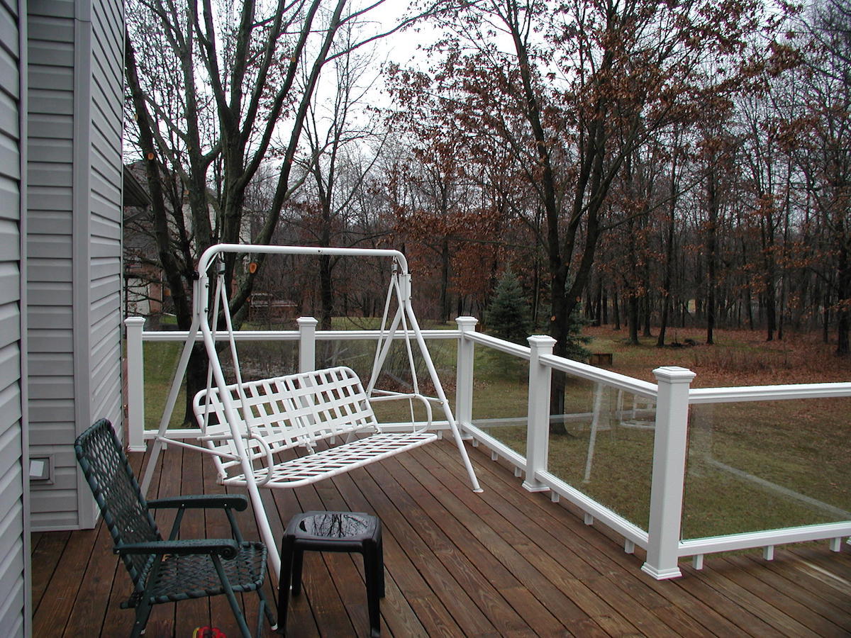 We replaced the existing deck railing with Trex glass panel railing. Rails used to always be in the sightline. Not any longer! Glass is a low-maintenance material choice. It will not weather or degrade over time, which makes it an excellent option through the many seasons of your home. This new railing gives the owners an unobstructed view of their beautiful backyard.