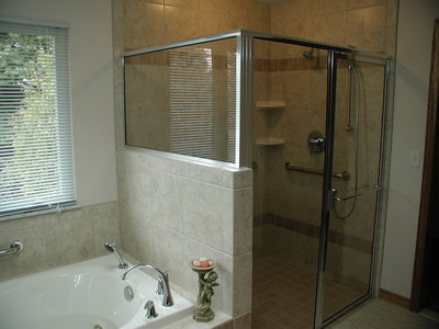 Great accessible bath in a master suite of a whole new addition we did in Pinckney. Awesome tile work and a zero clearance shower made this a truly special room. Grab bars were added in the shower to assist when needed.