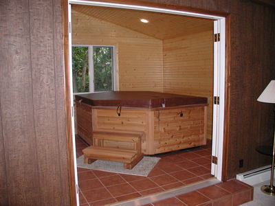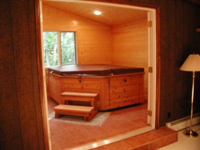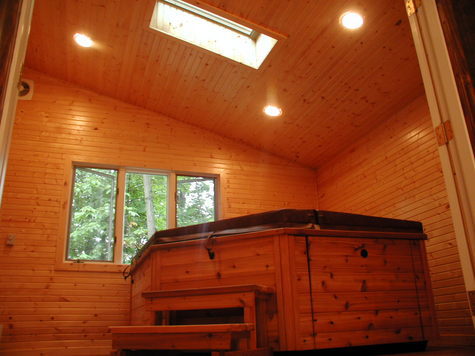 Wonderful addition as a hot tub room. Warm knotty pine and special ventilation considerations make this a favorite room in the house. A large window & skylight allows a lot of natural light in this room. The owners couldn’t be happier.