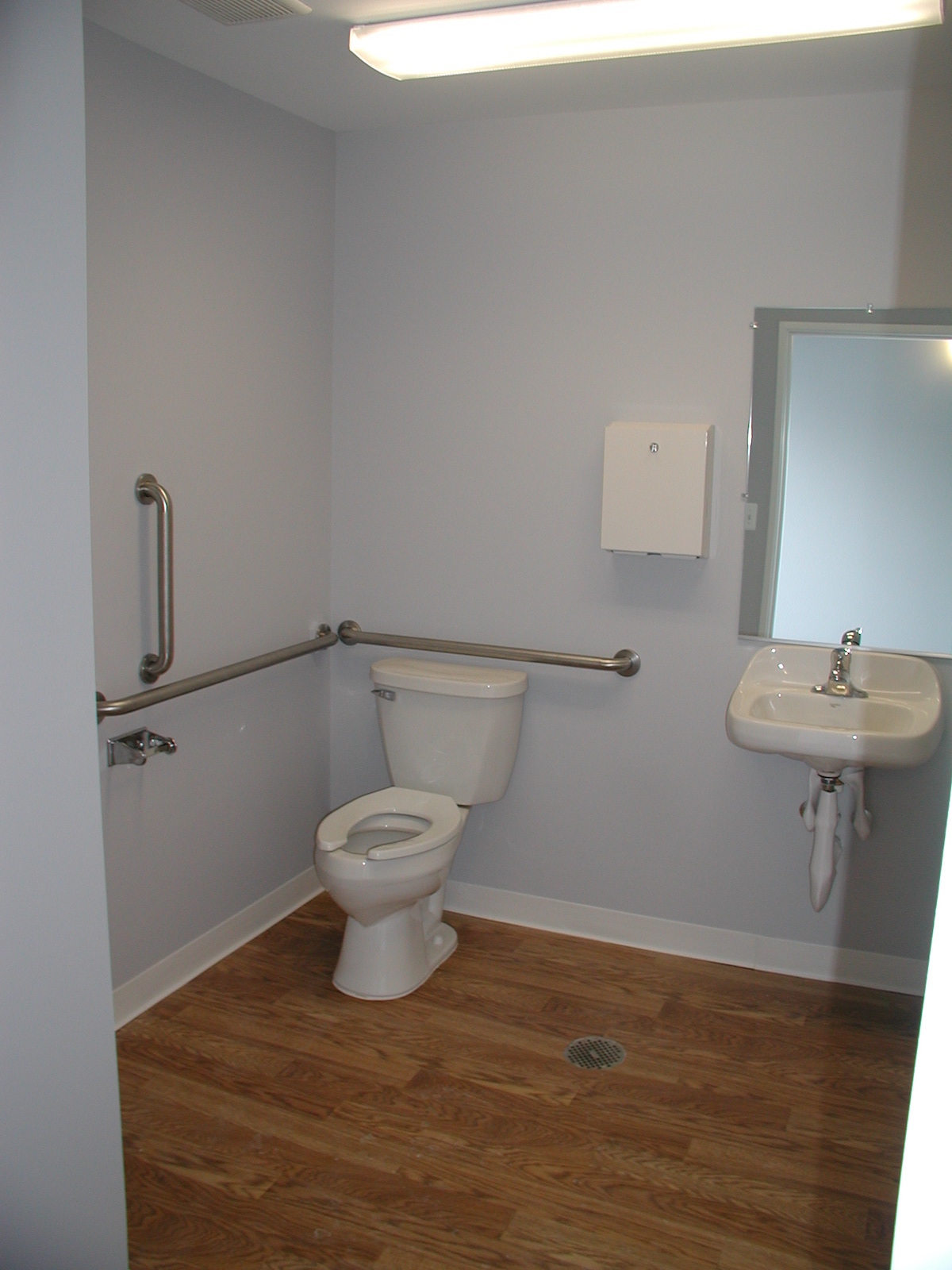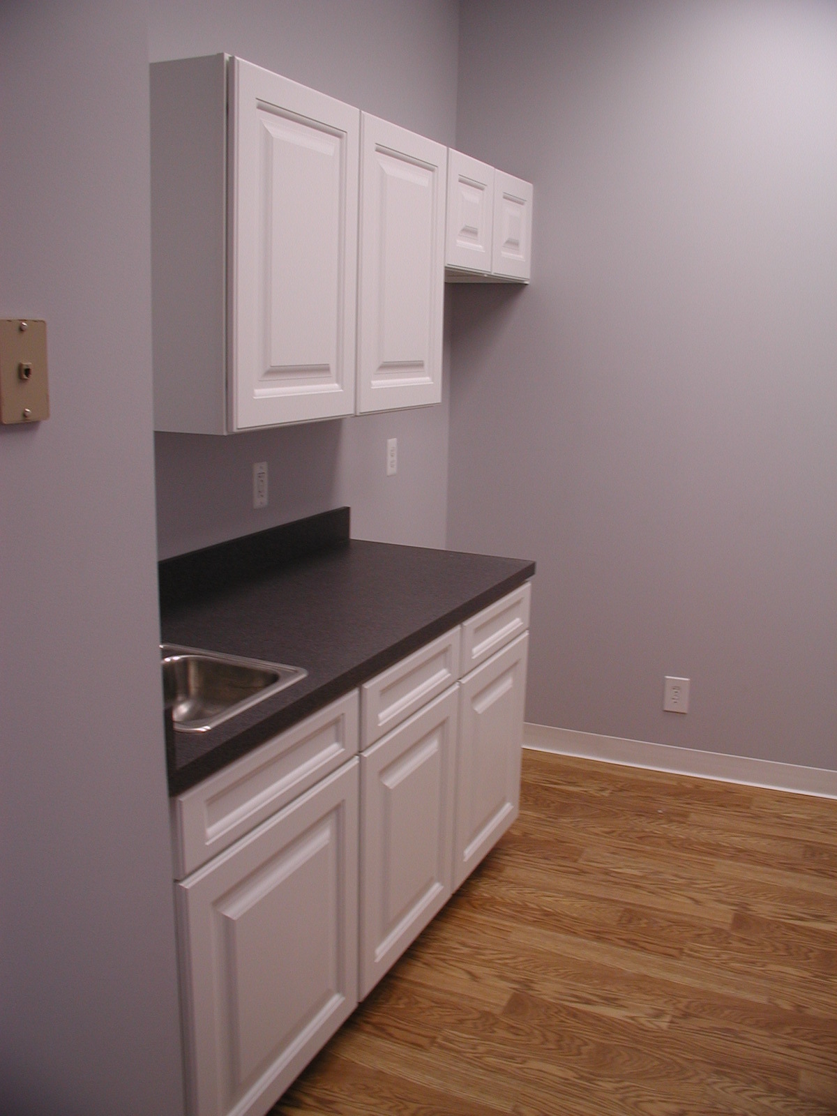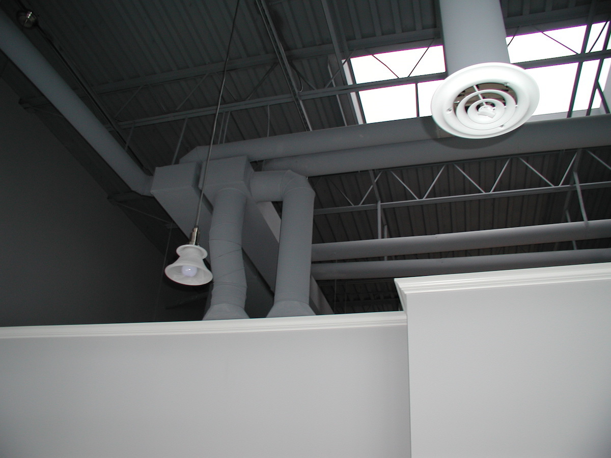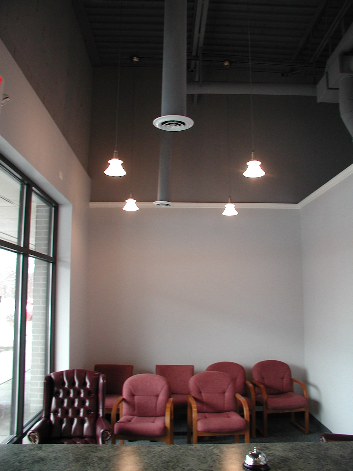 This commercial strip mall suite was renovated to accommodate the new tenants. We built walls to section off areas for offices, reception area, a break room, bathroom & storage areas. We painted the exposed ductwork to add visual interest to the tall ceilings. The large skylight adds a ton of natural light to the office space. The bathroom is ADA compliant & meets handicap accessible needs. Call us for your commercial renovation needs!