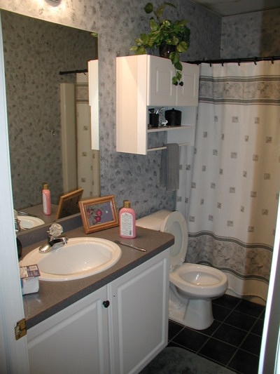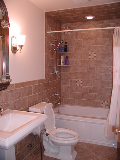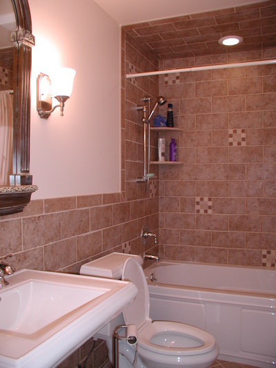 Standard size and shape of many, many bathrooms. This one, though, looks better than most. Wouldn’t you agree? By removing the tub insert & adding a custom tile design this bathroom is transformed.