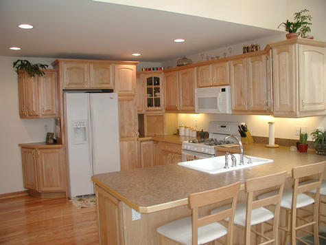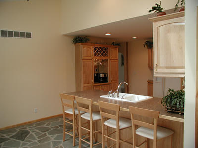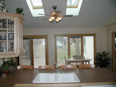 Kitchen remodel and breakfast nook addition in Brighton. New windows and skylights provide a ton of light & bring the outdoors in. The breakfast bar provides extra seating in the new kitchen. Featured in Tour of Remodeled Homes 2001. Nominated for City of Brighton Design Award.