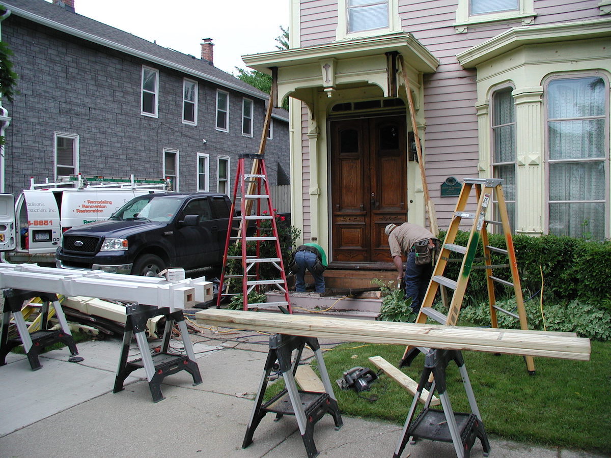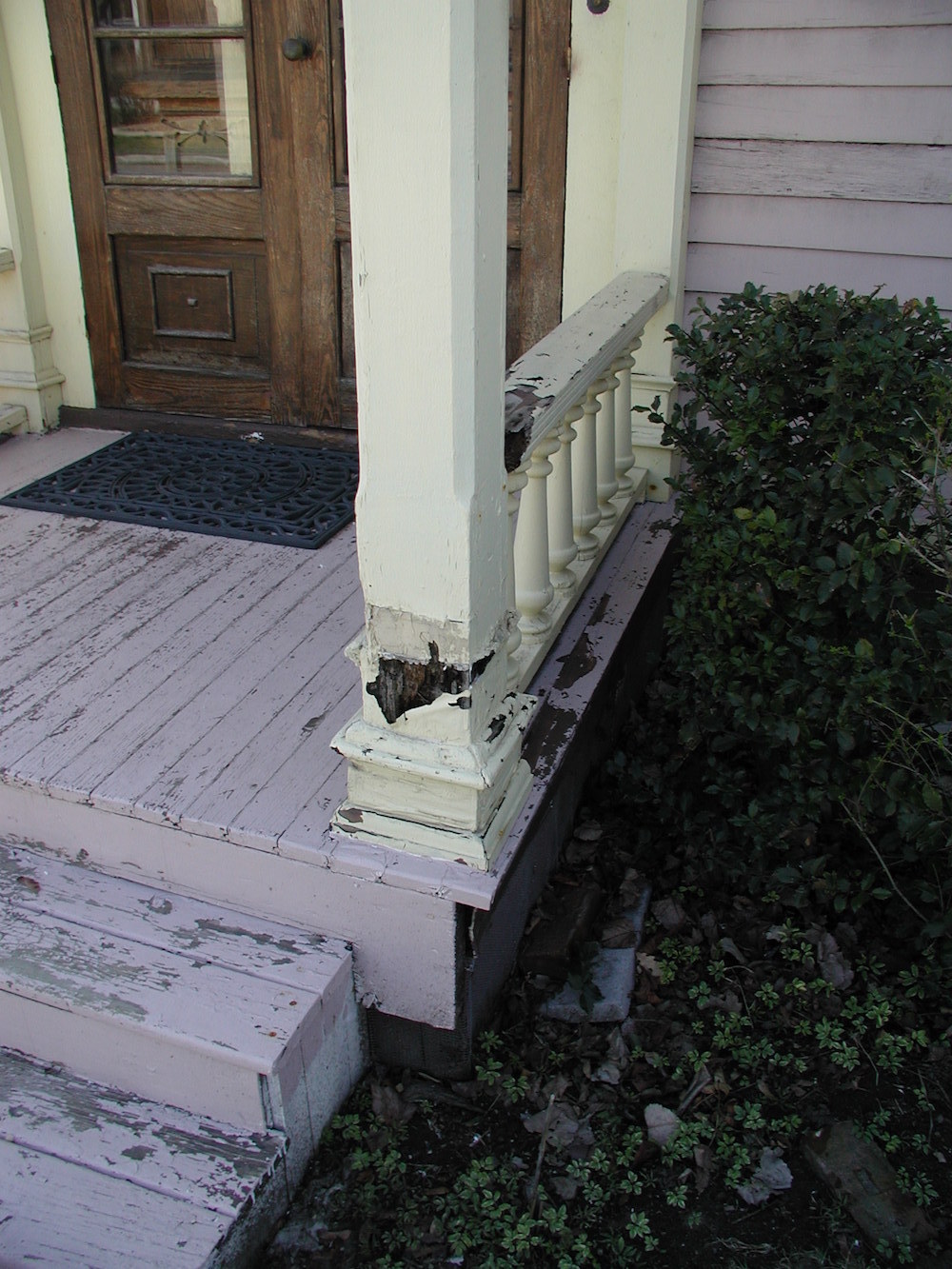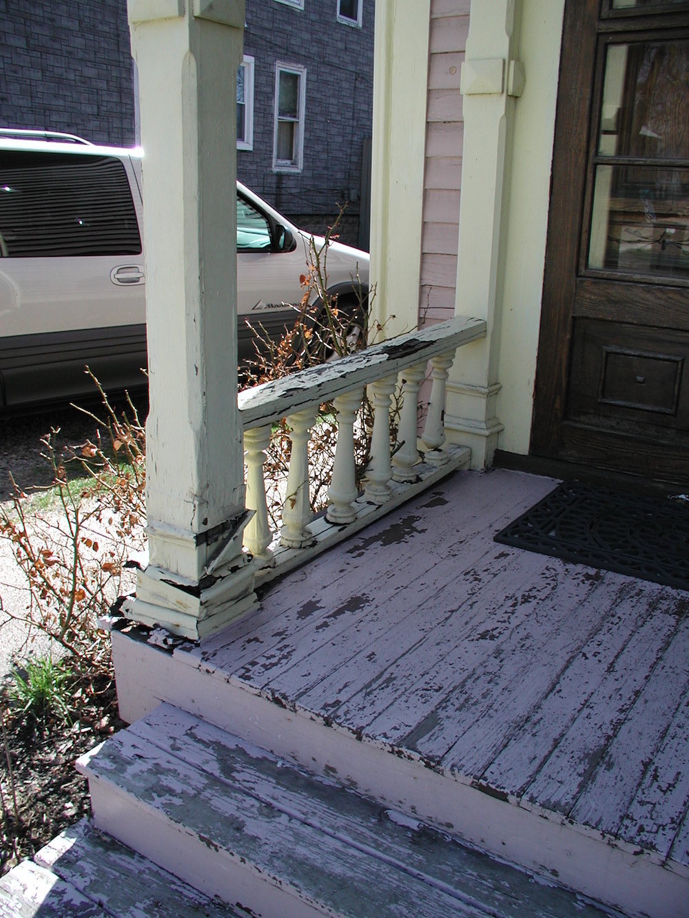 This front porch on a historic home in the shadow of the old train station in Detroit’s Corktown was in bad shape. It was completely rotted & in desperate need of repair. The substructure, floor boards, columns & railing all needed to be replaced. We specialize in historic restoration & love doing this kind of work. The owner was very pleased with the results & we were glad to be able to help!
